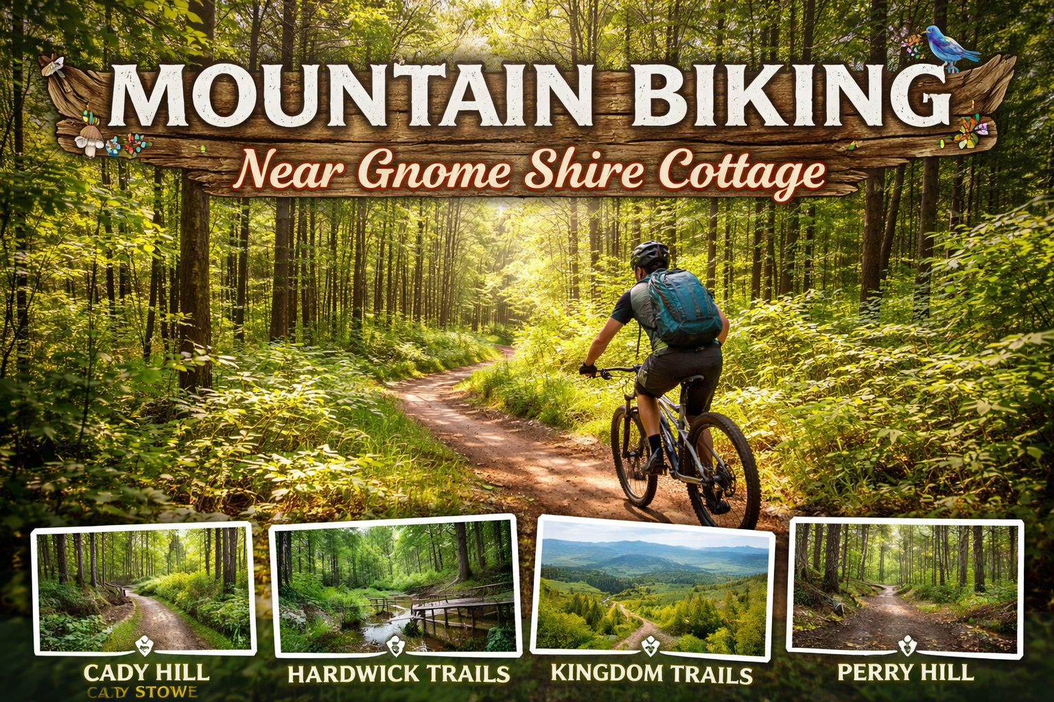 Stay at Gnome Shire Cottage and explore some of the best mountain biking in northern Vermont — from trails right next door to iconic destinations just a short drive away.